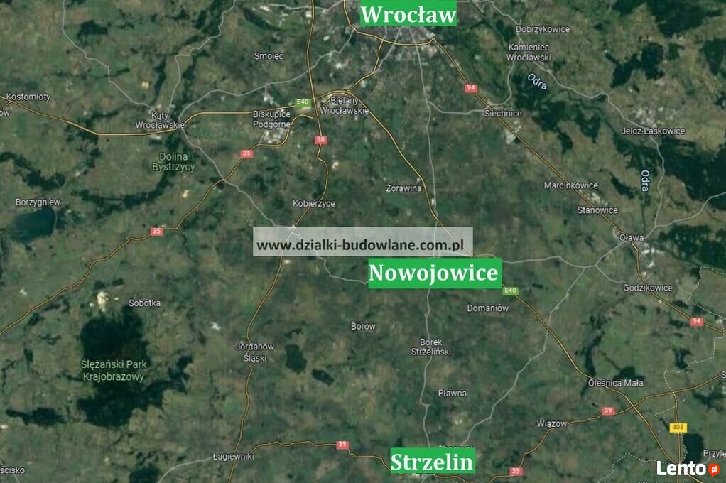 Działki pod zabudowę zagrodową we wsi Nowojowice, położonej przytrasie Wrocław - Strzelin.